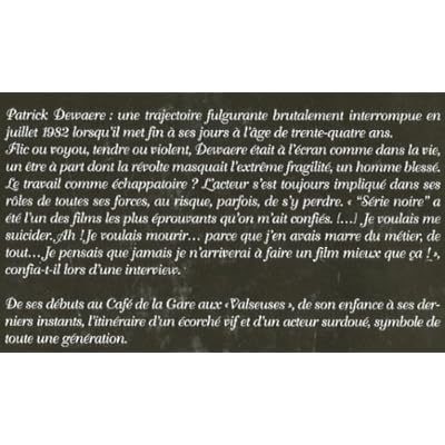 Patrick Dewaere : une trajectoire fulgurante brutalement interrompue en juillet 1982 lorsqu'il met fin à ses jours à l'âge de trente-cinq ans. Flic ou voyou, tendre ou violent, Dewaere était à l'écran comme dans la vie un être à part dont la révolte masquait l'extrême fragilité, un homme blessé. De ses débuts au Café de la gare aux Valseuses, de son enfance à ses derniers instants, l'itinéraire d'un écorché vif et d'un acteur surdoué, symbole de toute une génération.